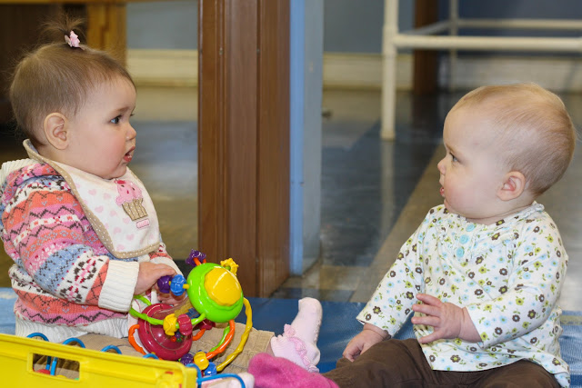 Another bonus was that I finally got to meet my friend Shauna's little girl Olivia, who was born two weeks before Em last April. It's nice to see another little girl who can rival Em's cheeks!
