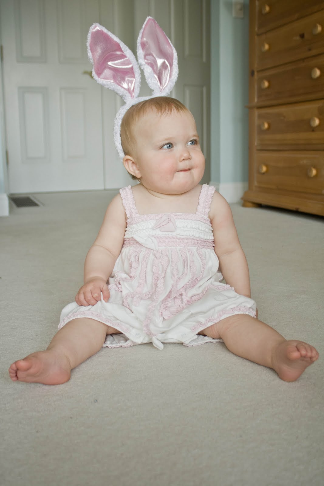 Then, finally! The princess woke up and if you know me at all, you are not surprised to learn that I took advantage of her sleepy seriousness to have a little photoshoot. She was just too beautiful to pass up. And my niece was nice enough to share her bunny ears to complete the look!